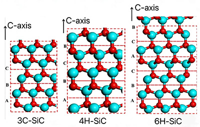 Loomulikult ei koosne SiC materjal ühest tetraeedrist, mis koosneb ühest Si-aatomist ja ühest C-aatomist, vaid lugematutest Si- ja C-aatomitest. Suur hulk Si- ja C-aatomeid moodustavad lainelised topeltaatomikihid (üks C-aatomite kiht ja üks Si-aatomite kiht) ning arvukad topeltaatomikihid kuhjuvad, moodustades SiC kristalle. Si-C topeltaatomi kihtide virnastamise protsessis toimuvate perioodiliste muutuste tõttu on praegu rohkem kui 200 erinevat kristallstruktuuri, millel on erinev paigutus. Praegu on praktilistes rakendustes levinumad kristallivormid 3C-SiC, 4H-SiC ja 6H-SiC.