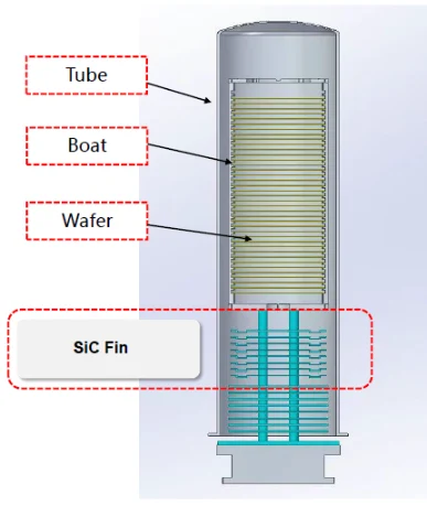 Semicorex tahkeränikarbiidist uimedpaigaldatakse tavaliselt soojusisolatsioonikomponentidena pooljuhttermotöötlusseadmete vertikaalsetesse ahjutorudesse, nagu RTP lõõmutusahjud ja difusioonahjud. Semicorexi tahked ränikarbiidist ribid suudavad tõhusalt reguleerida temperatuuri jaotust kõrge temperatuuriga ahjudes ja minimeerida kõrgetest temperatuuridest põhjustatud protsessi ukse tihendiosade kuumakahjustusi. Märgoksüdatsiooni töötingimustes saab Semicorexi tahke ränikarbiidi ribi kasutada, et tõhusalt ära hoida negatiivset mõju protsessi tulemustele ja pooljuhtseadmetele, mis on põhjustatud veeauru kondenseerumisest suhteliselt madalatel protsessitemperatuuridel.
